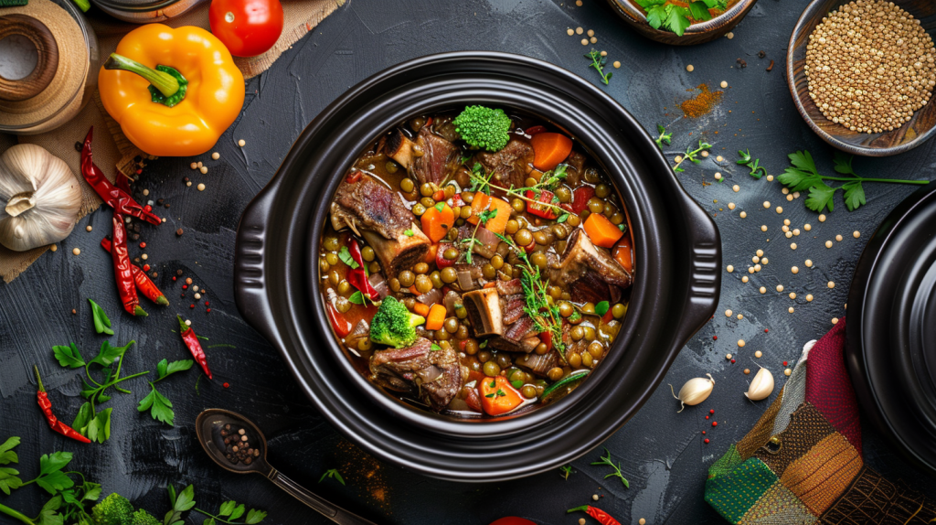 Pour the canned tomatoes, chicken stock, lentils, and pearl barley into the slow cooker. Stir gently to combine all ingredients.